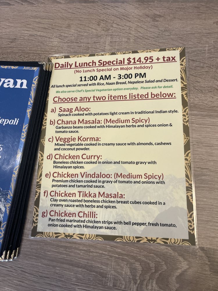 Add a refreshing Mango Lassi to complement your meal. The inviting atmosphere and efficient service further enhance your dining experience, making Himalayan Grill a must-visit for anyone craving authentic flavors in a comfortable setting.